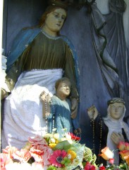 W obecnym ołtarzu pojawiła się w 1939 roku. Pojawiały się opowieści, że Różańcowa Madonna miała zapłakać - podczas opuszczania spalonego kościoła dominikańskiego....W podobraziu Różańcowej Madonny przez wiele lat Ojcowie Dominikanie umieścili relikwie wielu świętych. Podczas przenosin obrazu relikwie te wyjęto i umieszczono w specjalnych relikwiarzach umieszczając je na ołtarzu bocznym północnej nawy.