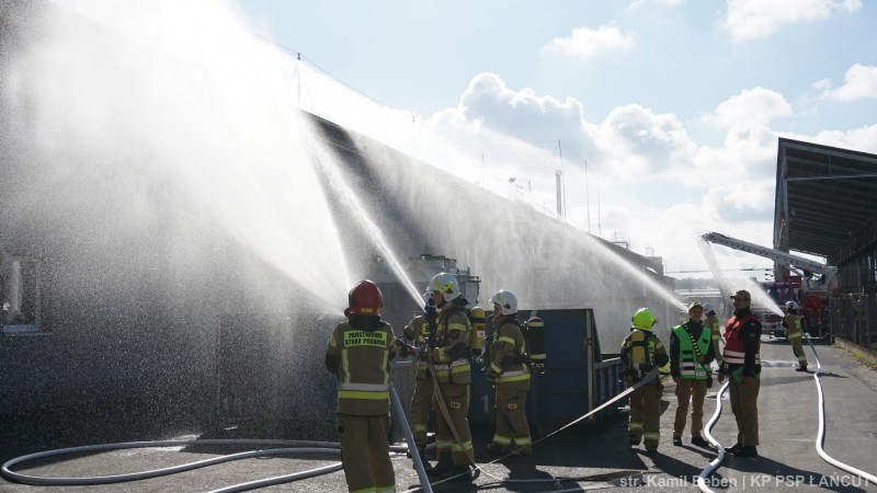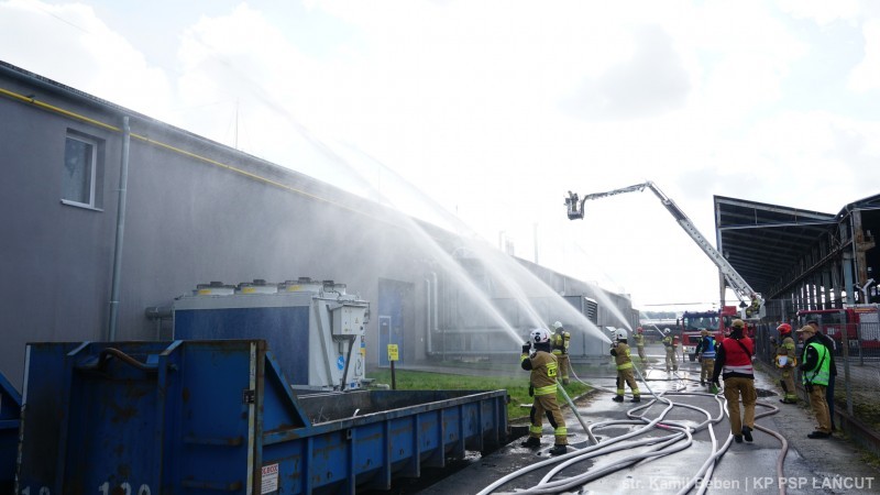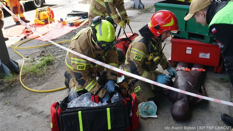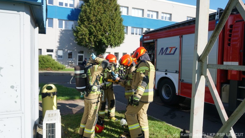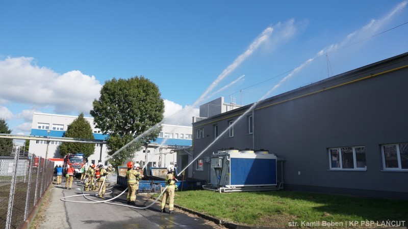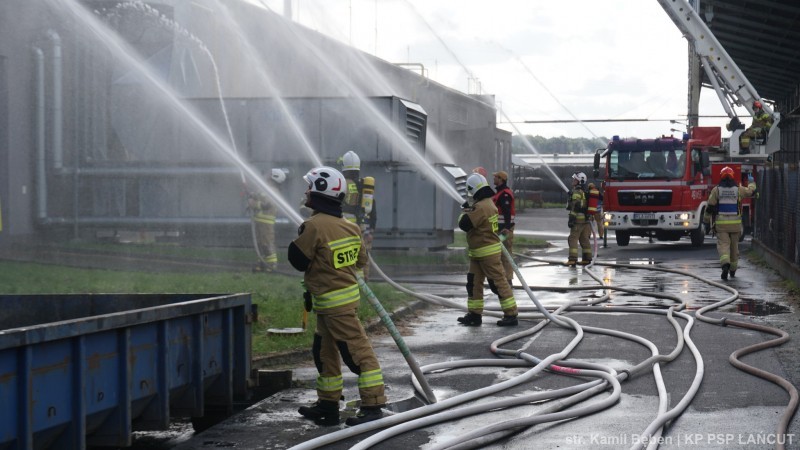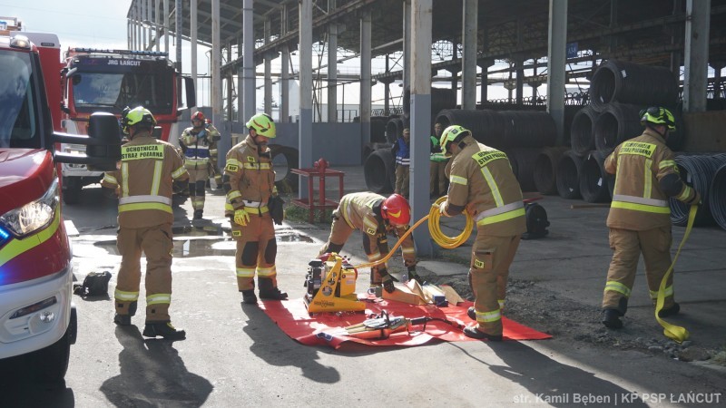 • utrzymania drożności dróg ewakuacyjnych i dostępu do hydrantów i gaśnic. 2. Optymalizacji zasad alarmowania, dysponowania i koordynacji działań jednostek PSP i OSP z terenu gmin Łańcut i Białobrzegi. 3. Oceny umiejętności dowodzenia przez kadrę kierowniczą PSP i OSP. 4. Sprawdzenia metod organizacji działań ratowniczo-gaśniczych podczas pożaru hali produkcyjno-biurowej, wystąpienia epizodów dodatkowych, organizacji zaopatrzenia wodnego, ewakuacji pracowników i udzielania kwalifikowanej pierwszej pomocy. 5. Weryfikacji przepływu informacji pomiędzy Kierującym Działaniami Ratowniczymi a dyrekcją zakładu. 6. Budowy i organizacji łączności radiowej, dokumentowania działań w systemie SWD-PSP oraz prowadzenia kart manipulacyjnych. 7. Oceny potencjalnych zagrożeń dla bezpieczeństwa publicznego i środowiska, a także doskonalenia współdziałania z Powiatowym Centrum Zarządzania Kryzysowego.